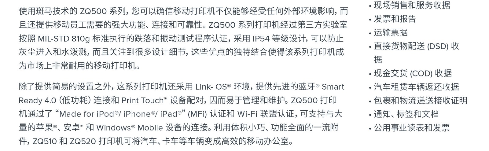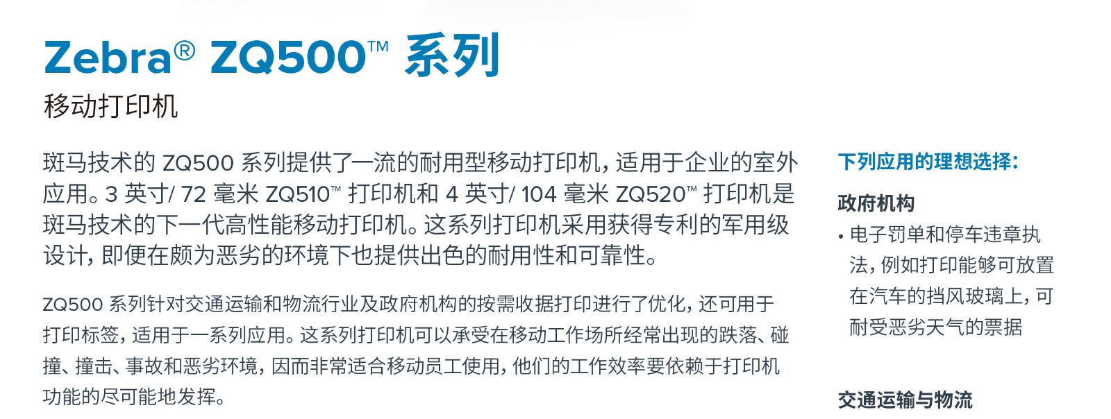 ZR600™系列移動打印機