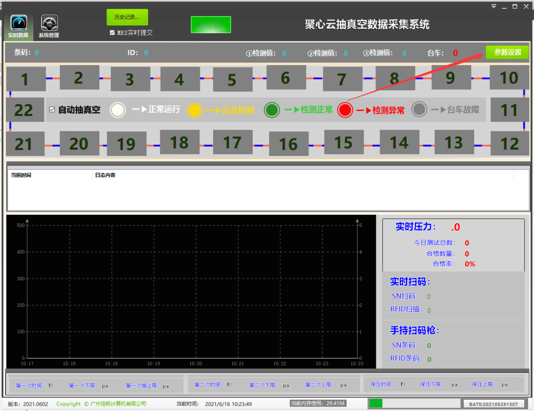佳帆科技聚芯云抽真空數據采集系統的部署,使美的家用空調生產線進一步實現智能化、精細化管理。在生產過程中,聚芯云抽真空數據采集控制系統實時采集壓力參數,生成曲線變化顯示圖;生產數據實時化的同時,可通過人性化交互界面進行數據監控,后續同步云端完成數據記錄與分析處理,實現不良品的自動排出。? 數據壓力曲線上傳MES實時統計分析,產品質量可溯源化? 自動比對產品工藝要求符合情況,自動報警,分離不良品佳帆科技自主研發的聚芯云抽真空數據采集系統具有高度可拓展性,可通過更換不同的數據采集模塊,廣泛應用于真空壓力檢測、水泵液位監控、氣象領域監控、煤礦工業、市政服務行業、養殖業環境檢測等多個領域。聚芯云抽真空數據采集系統配備定制化人機交互功能,具有自動化數據采集模塊高精度、數據采集應用靈活、穩定可靠性高等產品優勢。